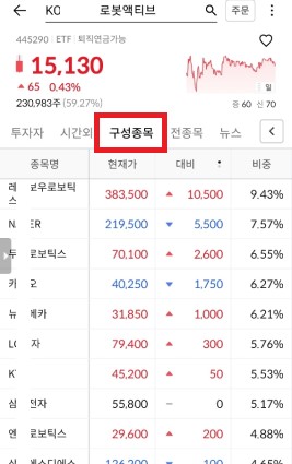 그럼 한번 ETF안에 어떤 종목들이 투자되고 있는지 확인해 볼까요?
