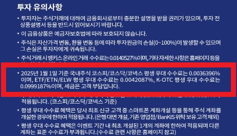 여기 증권사는 거래 시 0.0036396%를 적용해 준다고 되어 있는데 작은 글씨로 각 상품별 수수료율이 자세히 적혀 있네요.